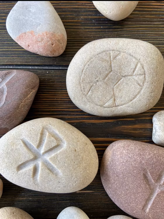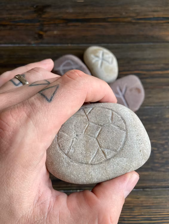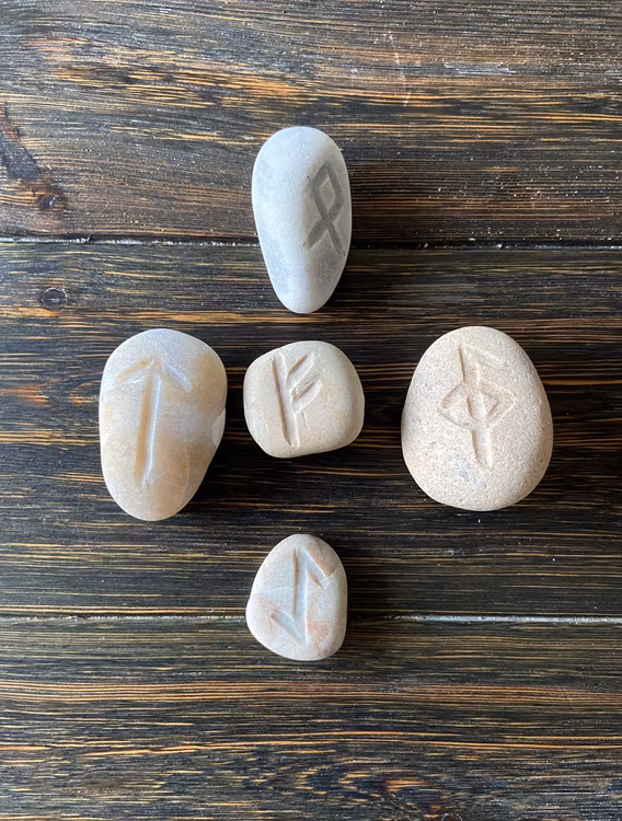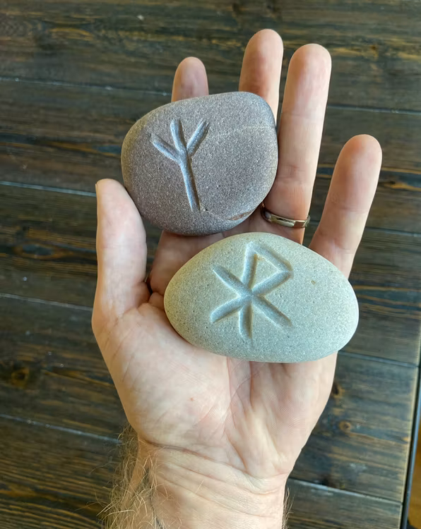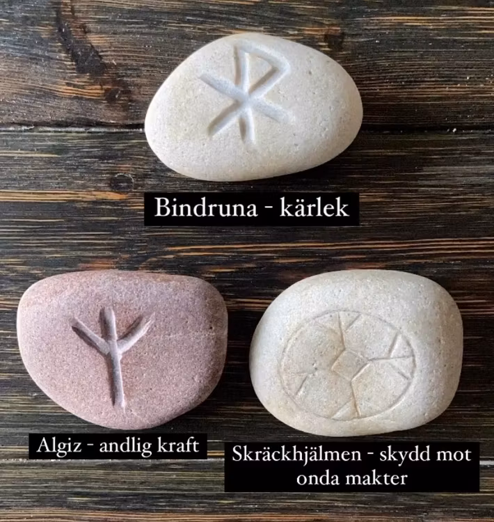 Specialbeställ en unik runa eller bindruna! Andreas ristar runorna för hand i vacker natursten som han valt ut själv på sina resor. Stenarna är ca 8-10 cm x 6 -7 cm breda. Observera att storleken och färg kan variera då det är ett naturmaterial. För att beställa, välj en runa som du dras till och välj den vid beställningen. Leveranstiden kan variera mellan 7 - 21 dagar, ibland längre vid många beställningar. Att rista en runa är något som tar både tid, tålamod och noggrannhet i anspråk - men som kan bestå i 1000 år! Levereras med en handskriven hälsning och kort om din runas egenskaper.